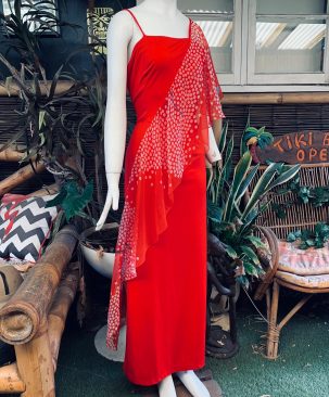 1970’s Red Maxi with Chiffon Ruffle by Modit Creations