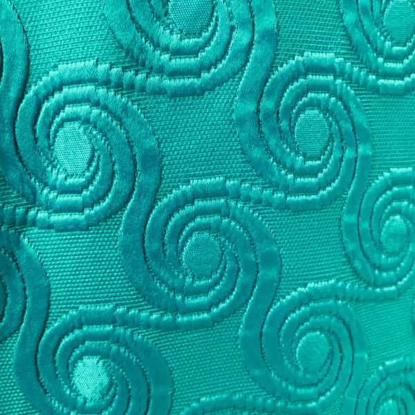 The fabric on the dress is quite unusual, with funky swirls. It is quite a heavy type fabric. It also features sequin trimming & matching belt.